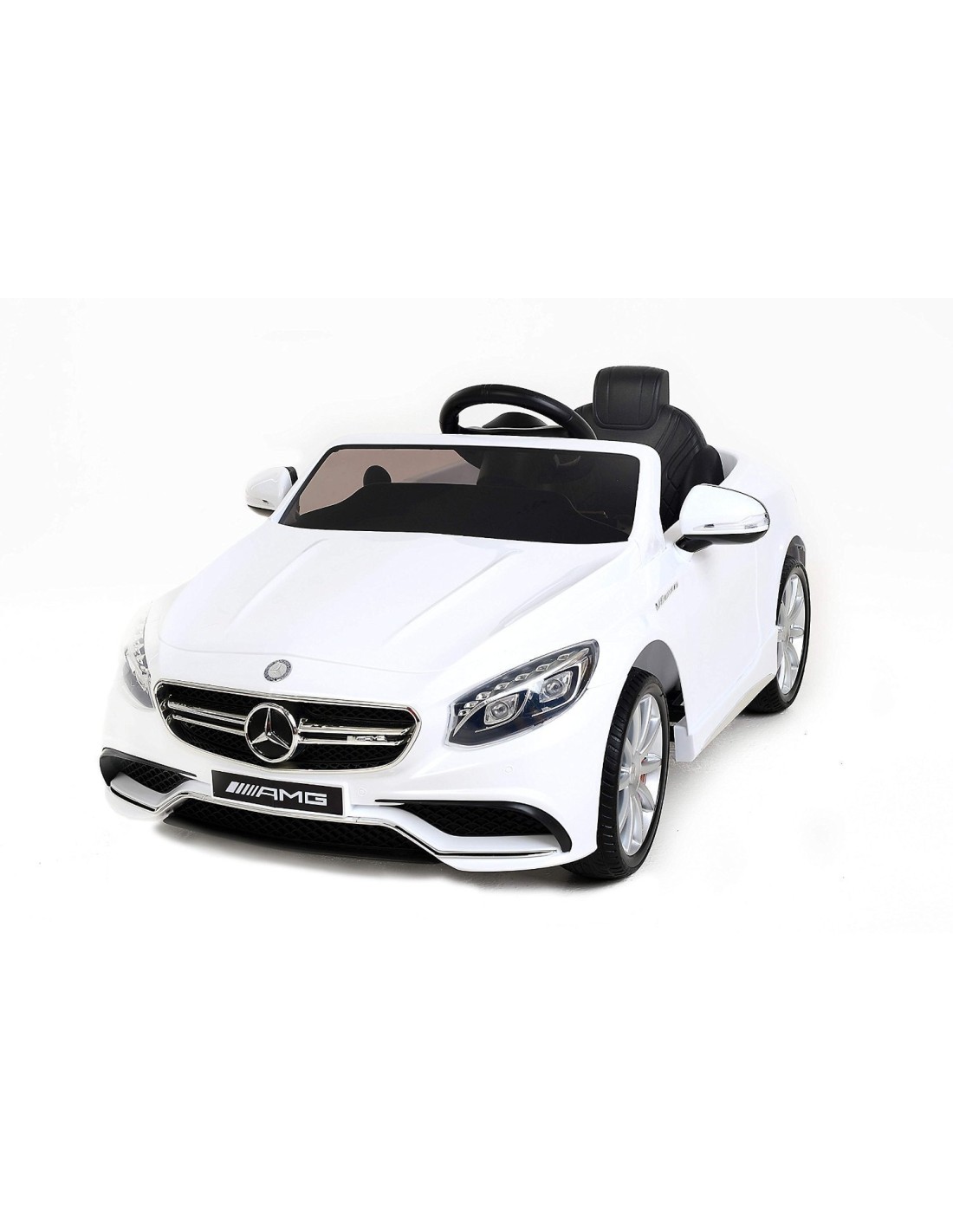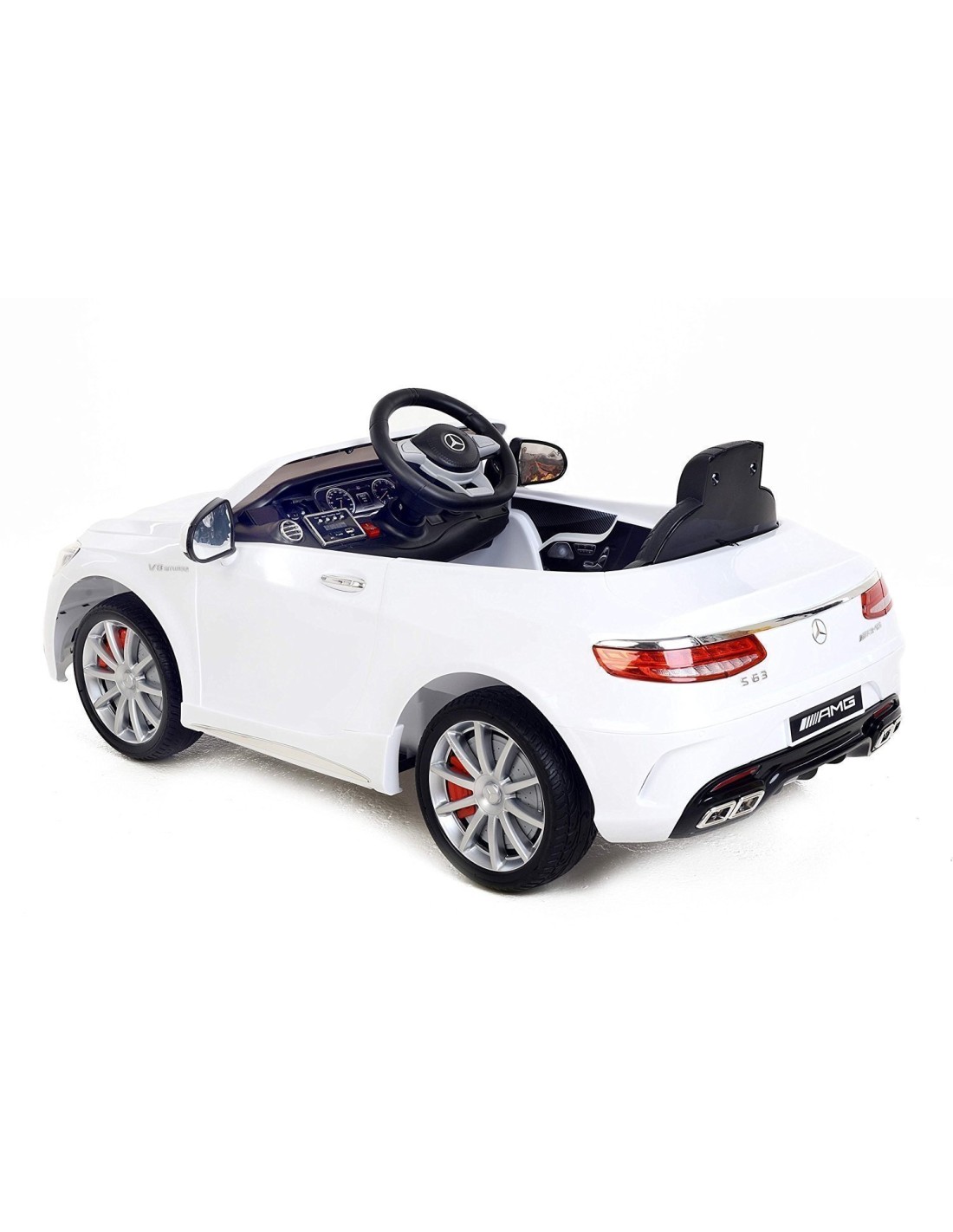 Como dejar a tu pequeño sin su Mercedes-Benz S63 AMG. Este coche electrico para niños posee LICENCIA MERCEDES, con mando a distancia 2.4ghz. El coche electrico de juguete Mercedes-Benz S63 AMG cuenta con un aspecto moderno con insignias y logotipos originales de la marca, materiales y fabricación de alta calidad. Este modelo incorpora un asiento muy cómodo para el niño. Tiene ruedas EVA suaves para conducción cómoda y durabilidad. Además también viene equipado con faros delanteros y traseros. Con botones de bocinas que reproducen música pop, puerto de conexión de un reproductor de MP3, control de volumen y efectos de sonido. Para la seguridad del niño, viene con cinturones de seguridad ajustables. Indicador de carga de la batería, con 2 unidades de motor en la ruedas traseras de 45w cada uno, 2 velocidades hacia adelante y 2 hacia atras lo que permite conducirla en todos los caminos. Para niños más pequeño: ¡opción de ajuste lento! No requiere mantenimiento adicional, excepto cargar la batería y limpiarla ocasionalmente.Conduciendo este fantástico coche electrico su hijo será el centro de atención.