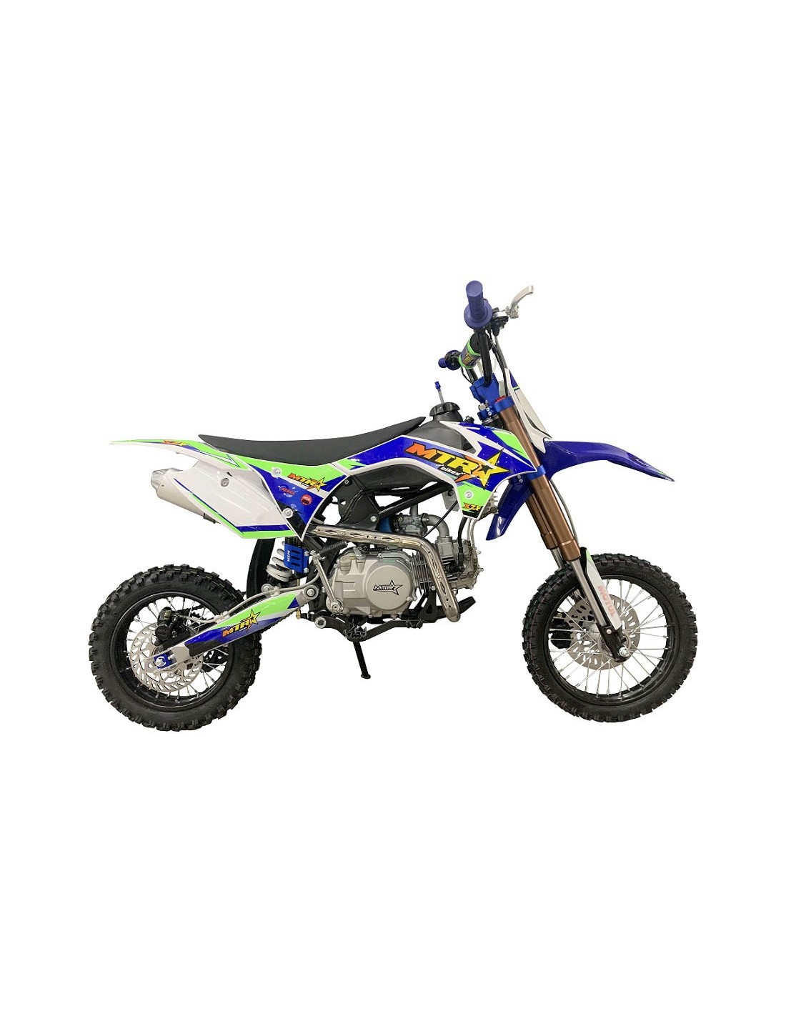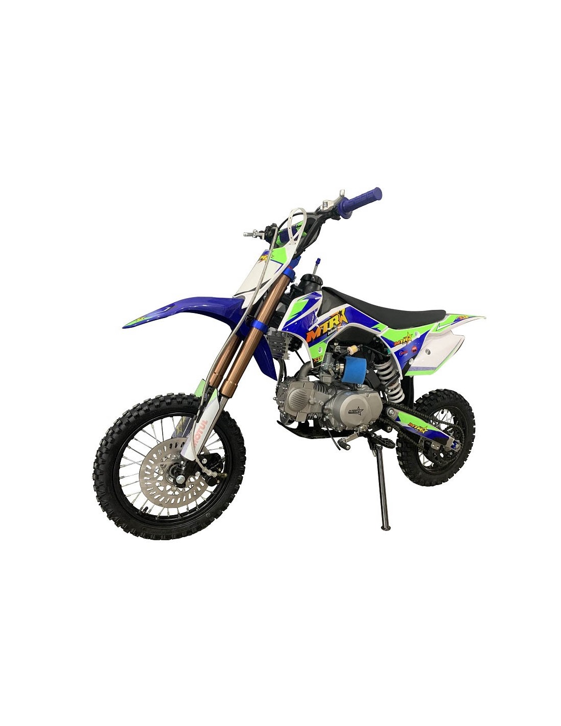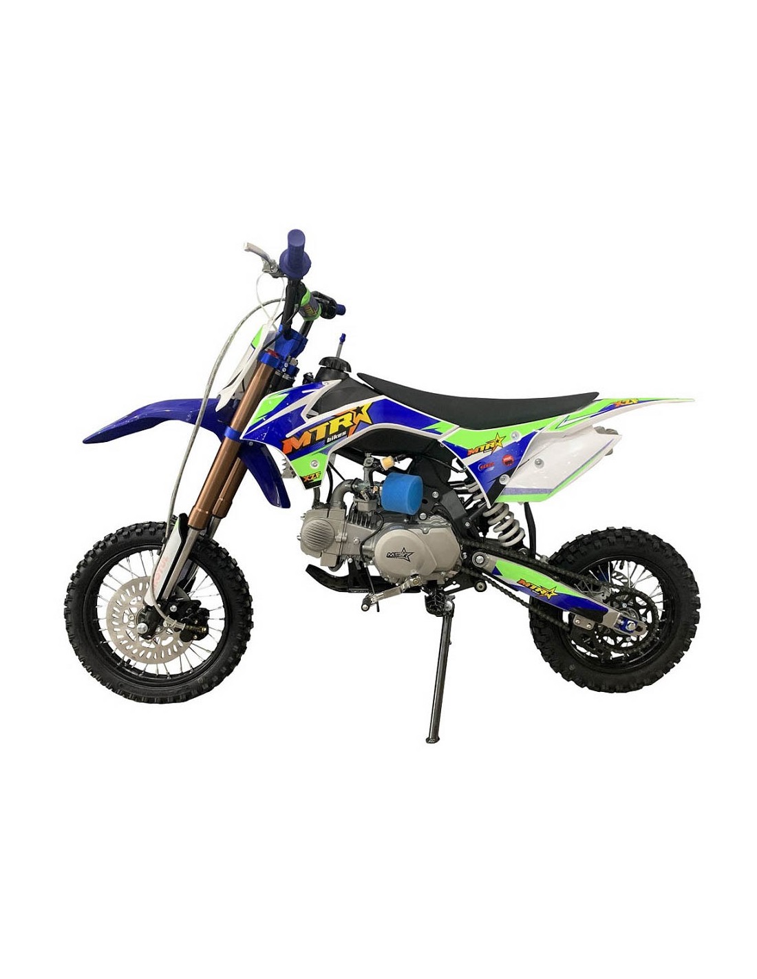 La MTR XZF ktm85 es el modelo mas evolucionado de la gama, incluye extras como puños de goma azules, tensores de cadena en cnc azul, manetas antiroturas reversibles, filtro de esponja color azul, tijas anonizadas en azul de alta calidad y mucho mas.