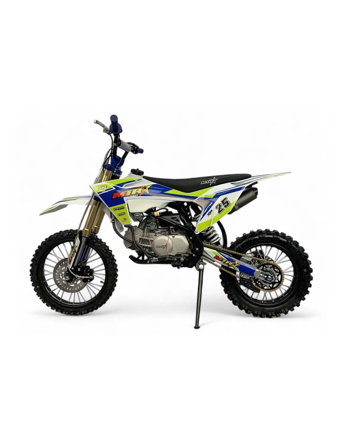 La MTR XM160 cuenta con chasis extreme box para uso en cross super resistente a cualquier tipo de salto, ideal para hacer enduro por su altura, con sus 86ctmos del asiento al suelo, esto si es una autentica moto de cross mid size!! Esto es posible gracias a sus llantas de mayor tamaño que en la version mas pequeña XZF, con llanta de 17" delantera y 14" trasera.