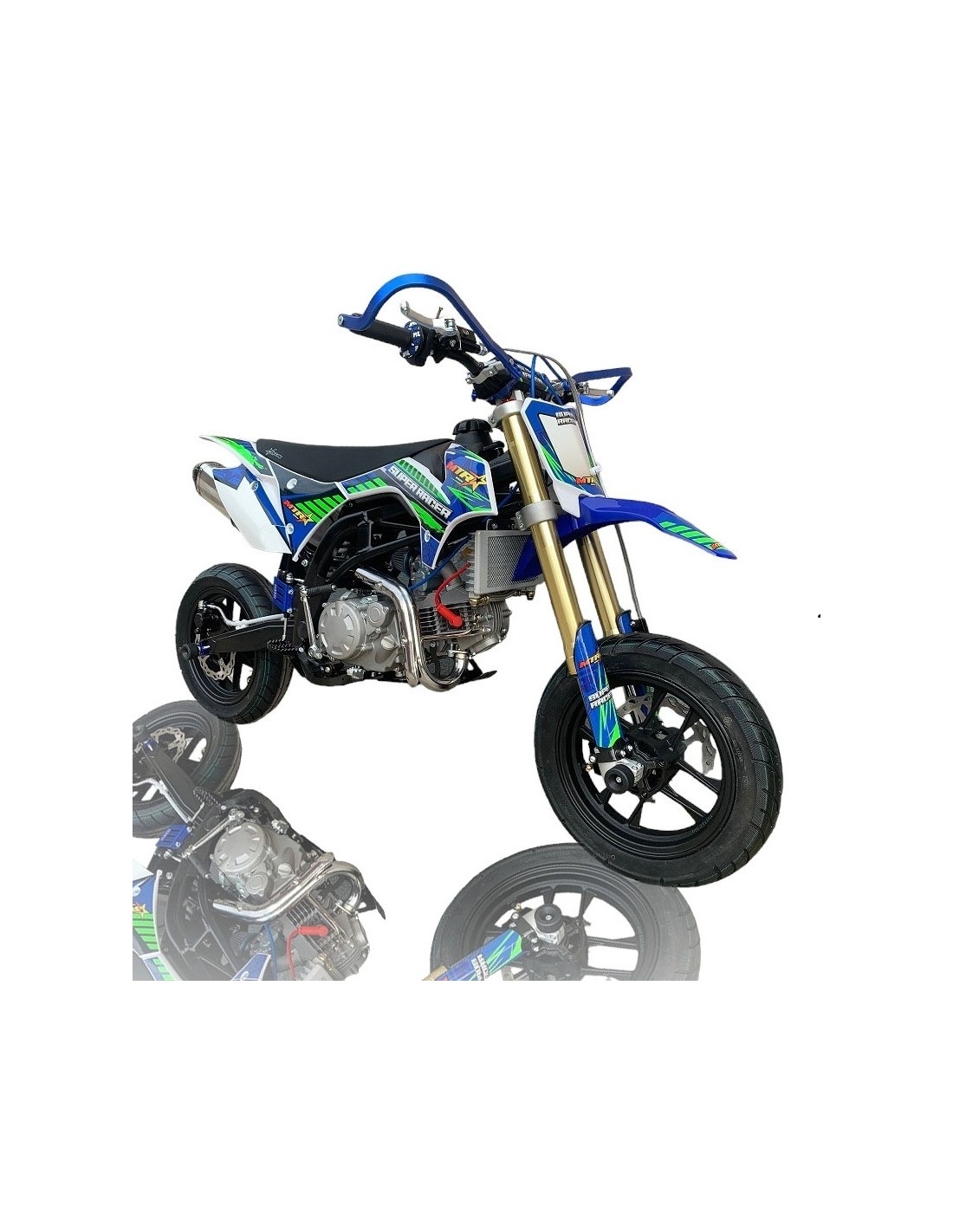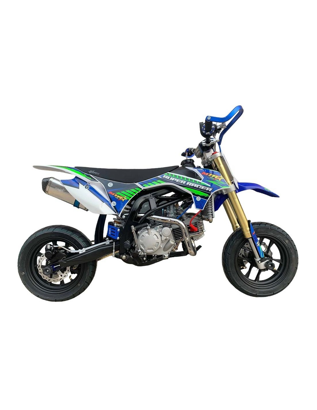 Con esta SUPERMOTARD no tendras que aflojar un euro mas en la moto, esta pensada para ir rapido en un circuito con los mejores componentes sin que tengas que pagar mas por ello. Compara y suma sus componentes con otras marcas y veras que no hay lugar a dudas para llevarte tu MTR SUPER RACER.